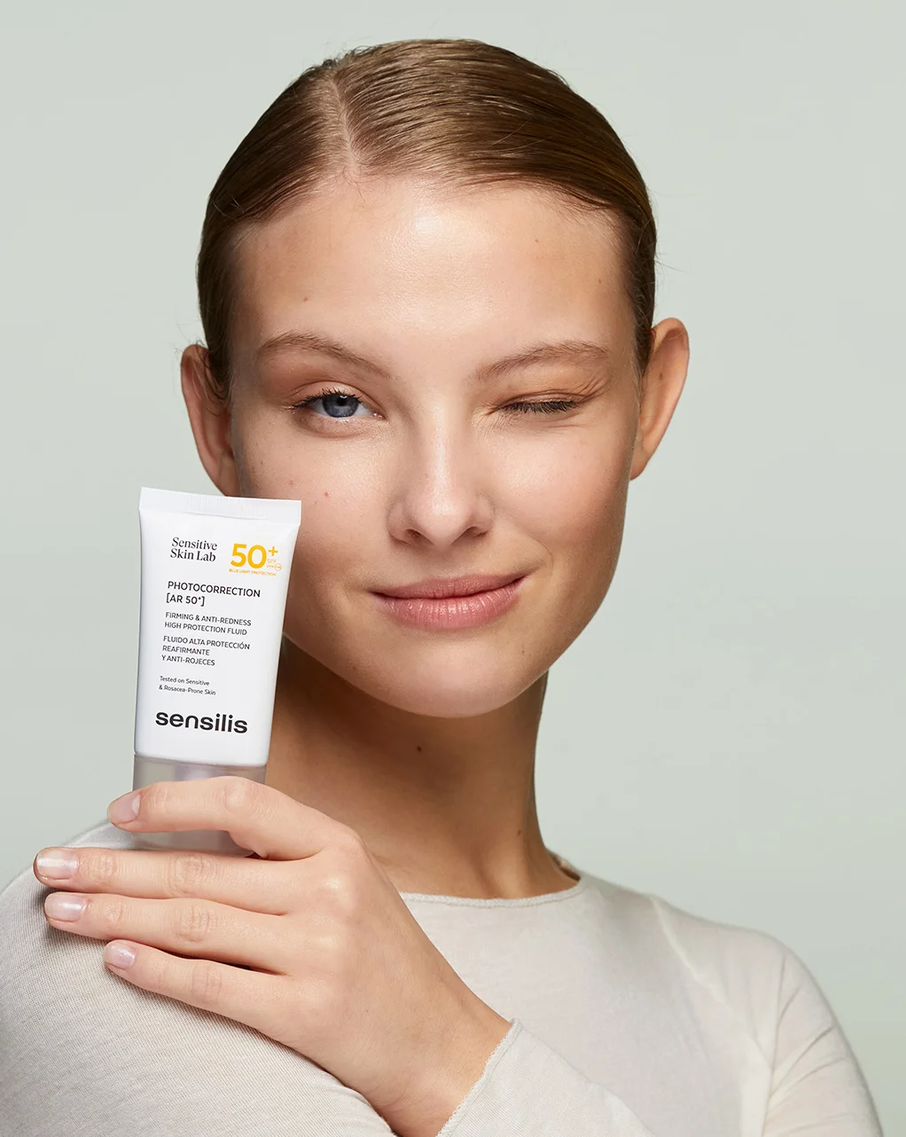 Photocorrection [AR 50+] is for people with sensitive, rosacea and/or couperose-prone skin who follow an anti-redness and firming routine and are looking for a moisturizing and soothing daily sunscreen.